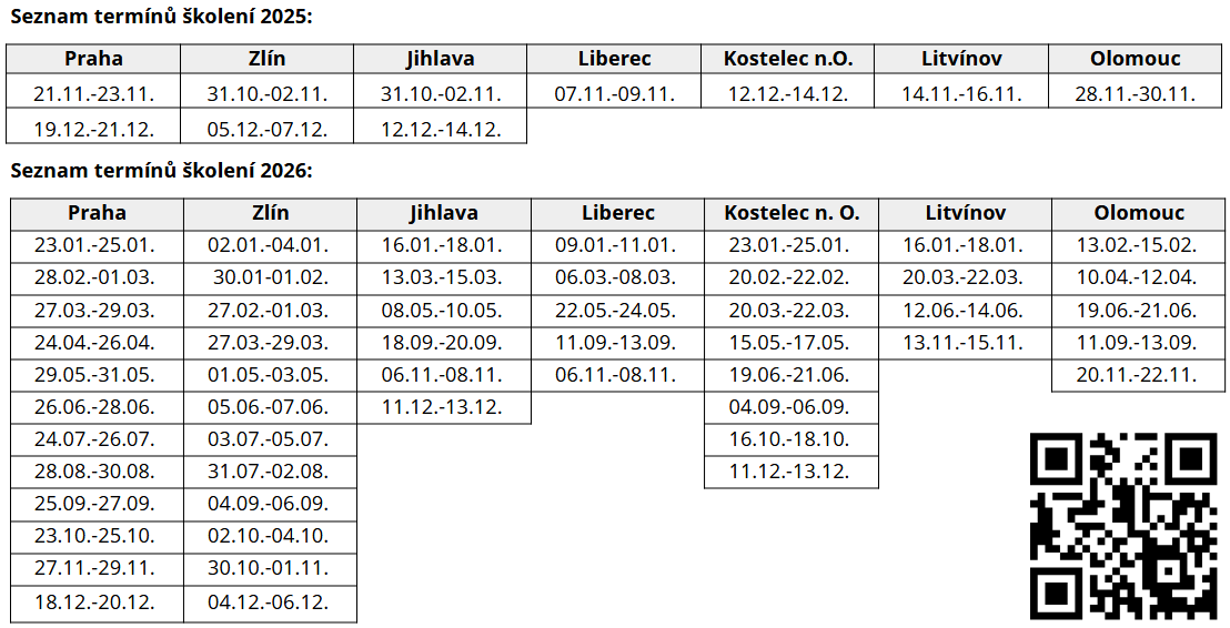 - 3 802,- Kč za obnovu základního kurzu v posledním 5. roce platnosti osvědčení
